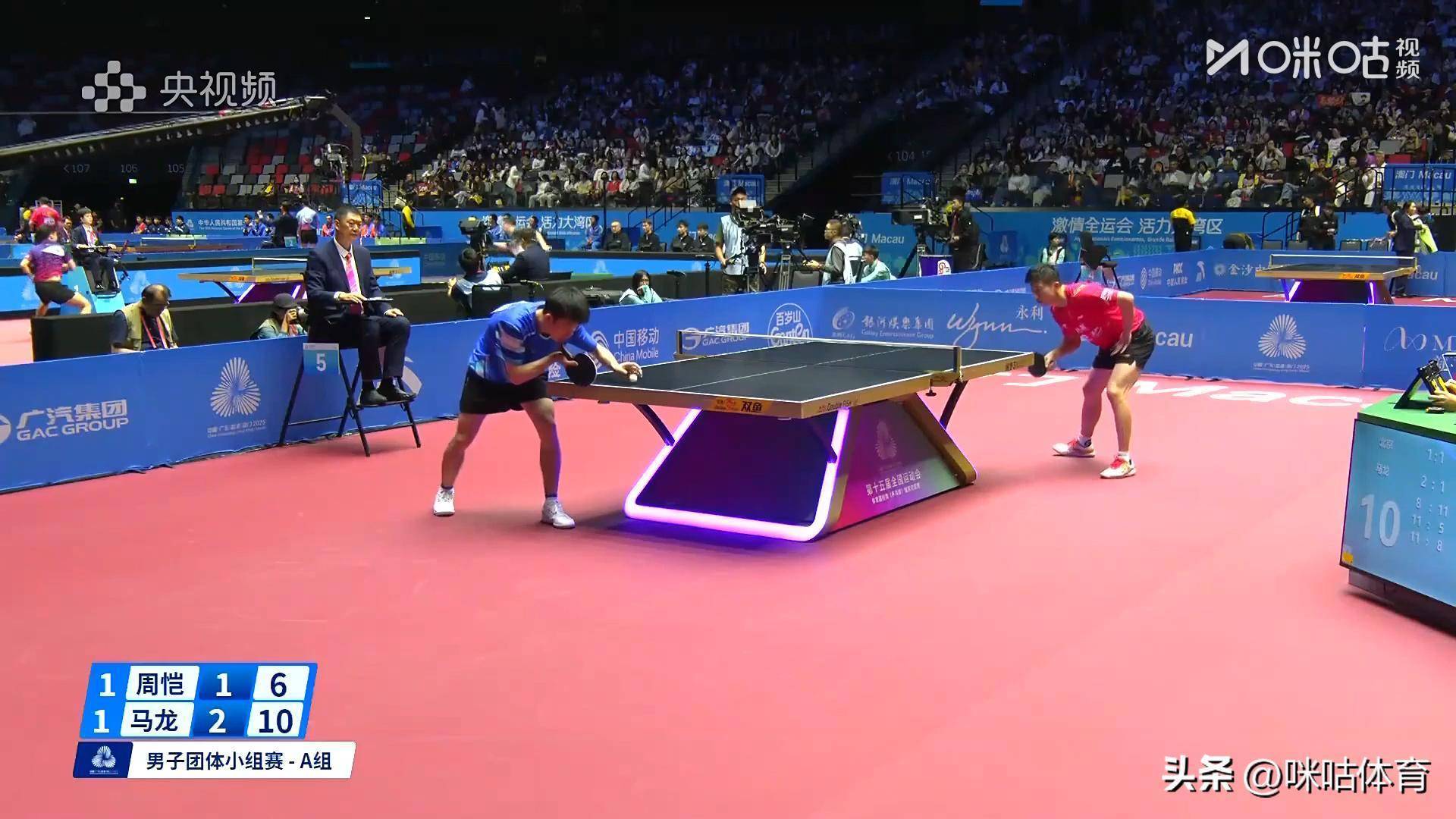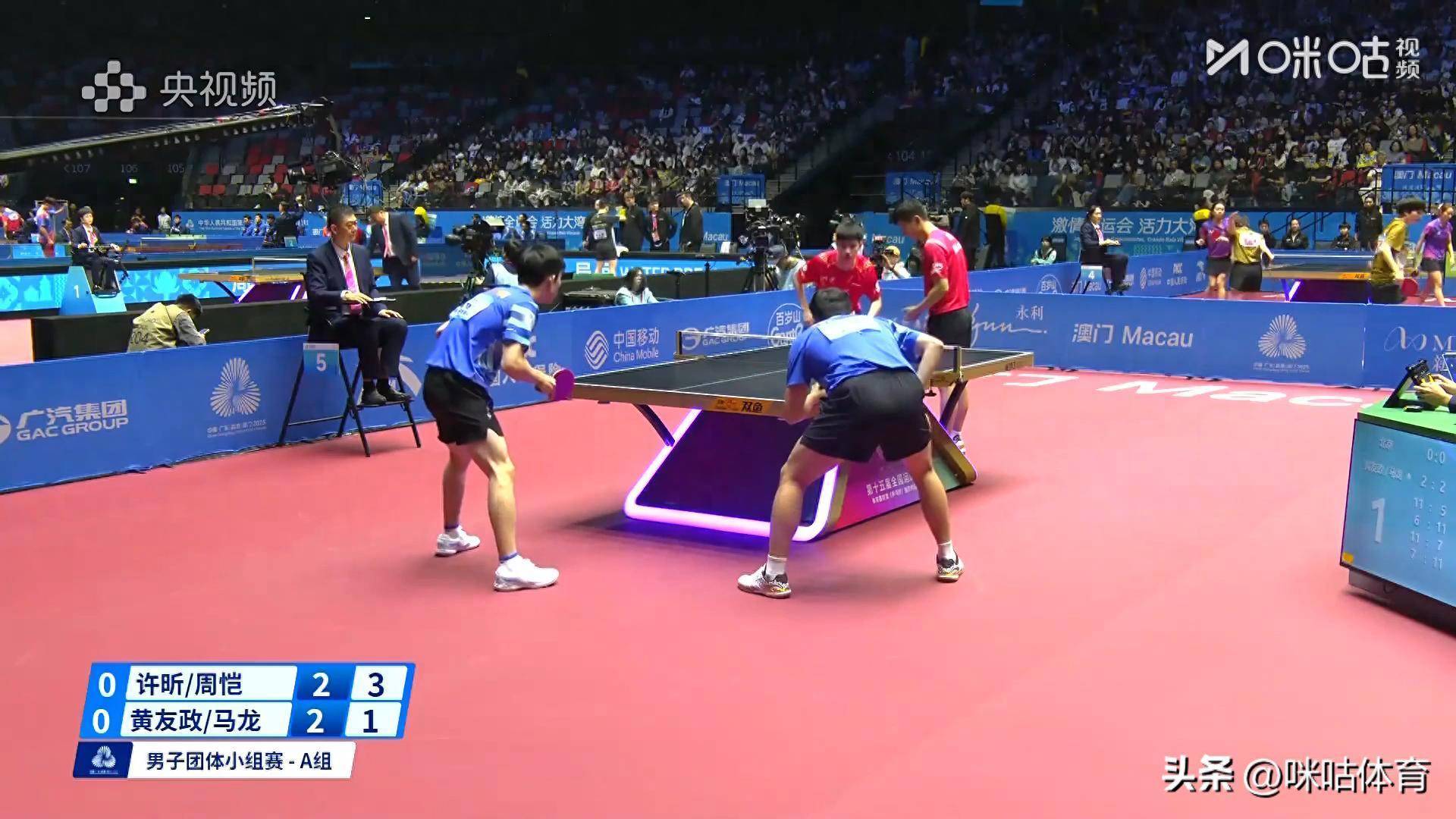 第一盘:许昕周恺3-2马龙黄友政【5-11、11-6、7-11、11-7、11-5】