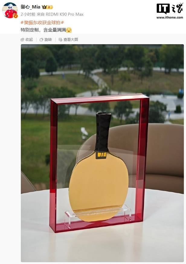 樊振东任小米之家一日店长,获赠荒谬定制金拍子