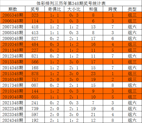 体彩陈设三积年第348期开出奖号别离为:323、114、418、413、827、484、227、821、566、168、878、757、087、144、055、241、739、597、192。统计详见下表: